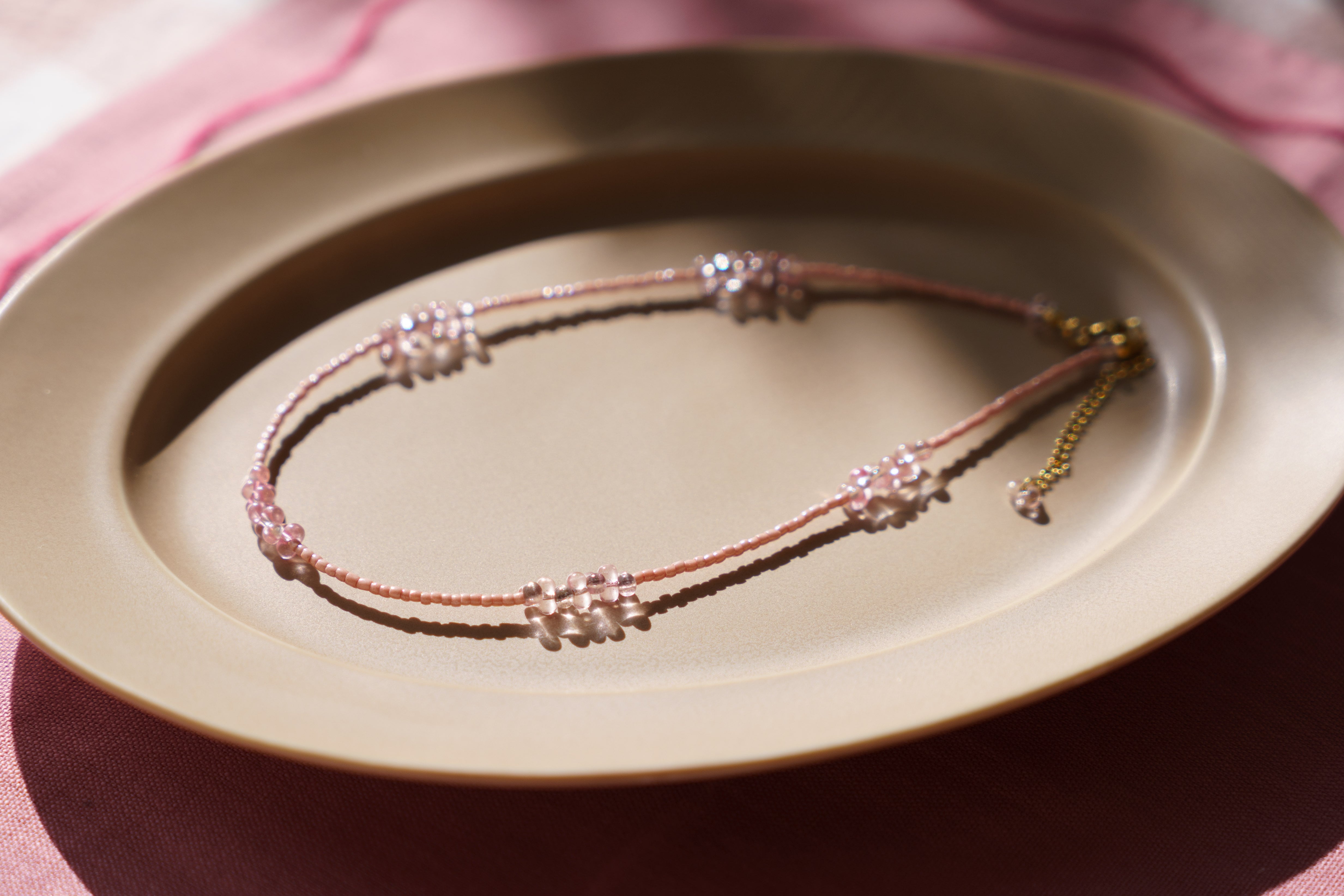 — 包み合う記憶 — 誰もが心に記憶するぬくもり 芯のあるやさしさで大切な人と包み合うように 個性的なビーズと上品なビーズで仕上げたチョーカーネックレス ニットやスウェットコーデに 柔らかな色合いでさりげない大人の可愛さを 材質:ビーズ、サージカルステンレス サイズ:約36cm+5cmアジャスター