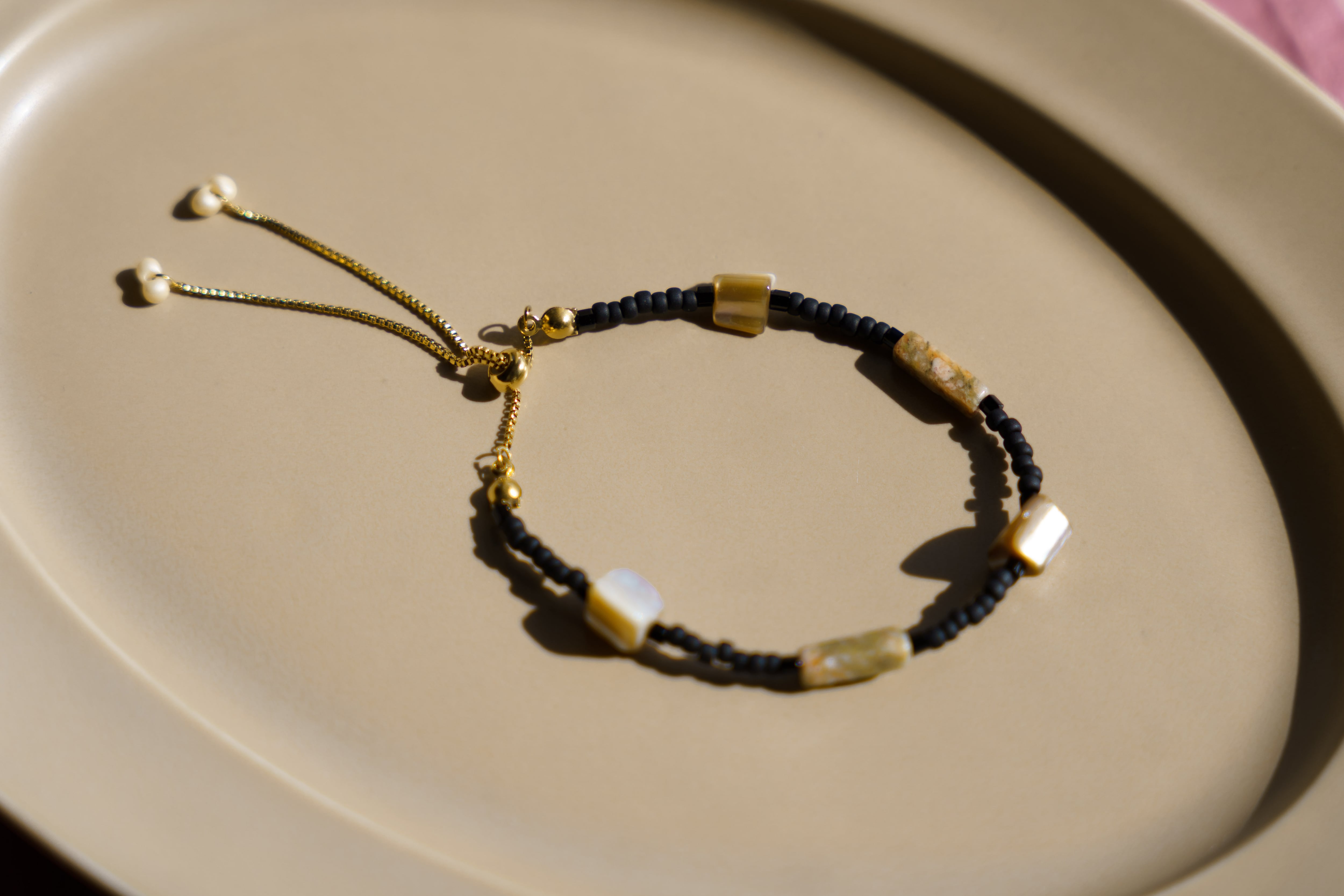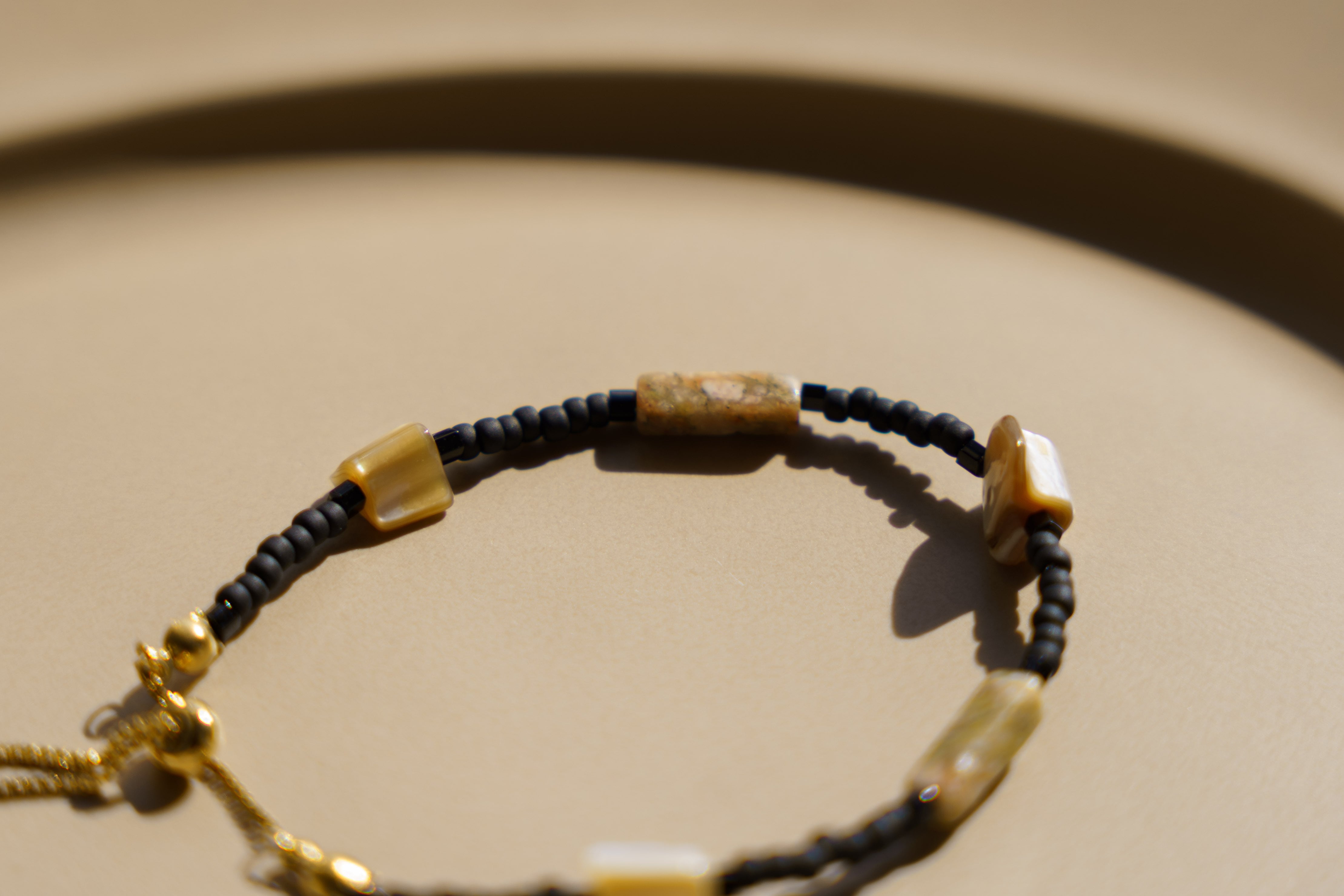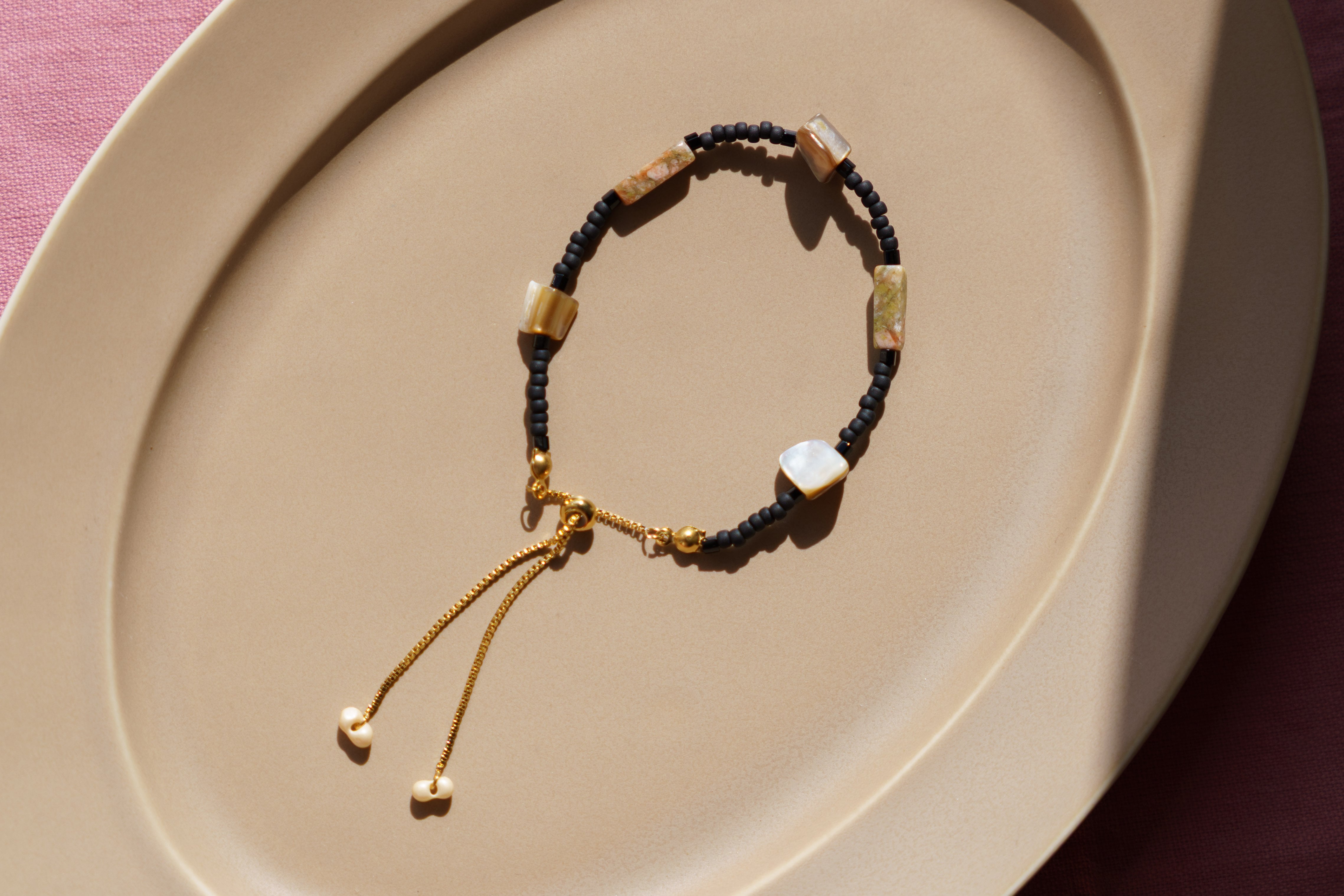 オータムンジャスパーと天然シェル、上品なビーズで仕上げたブレスレット