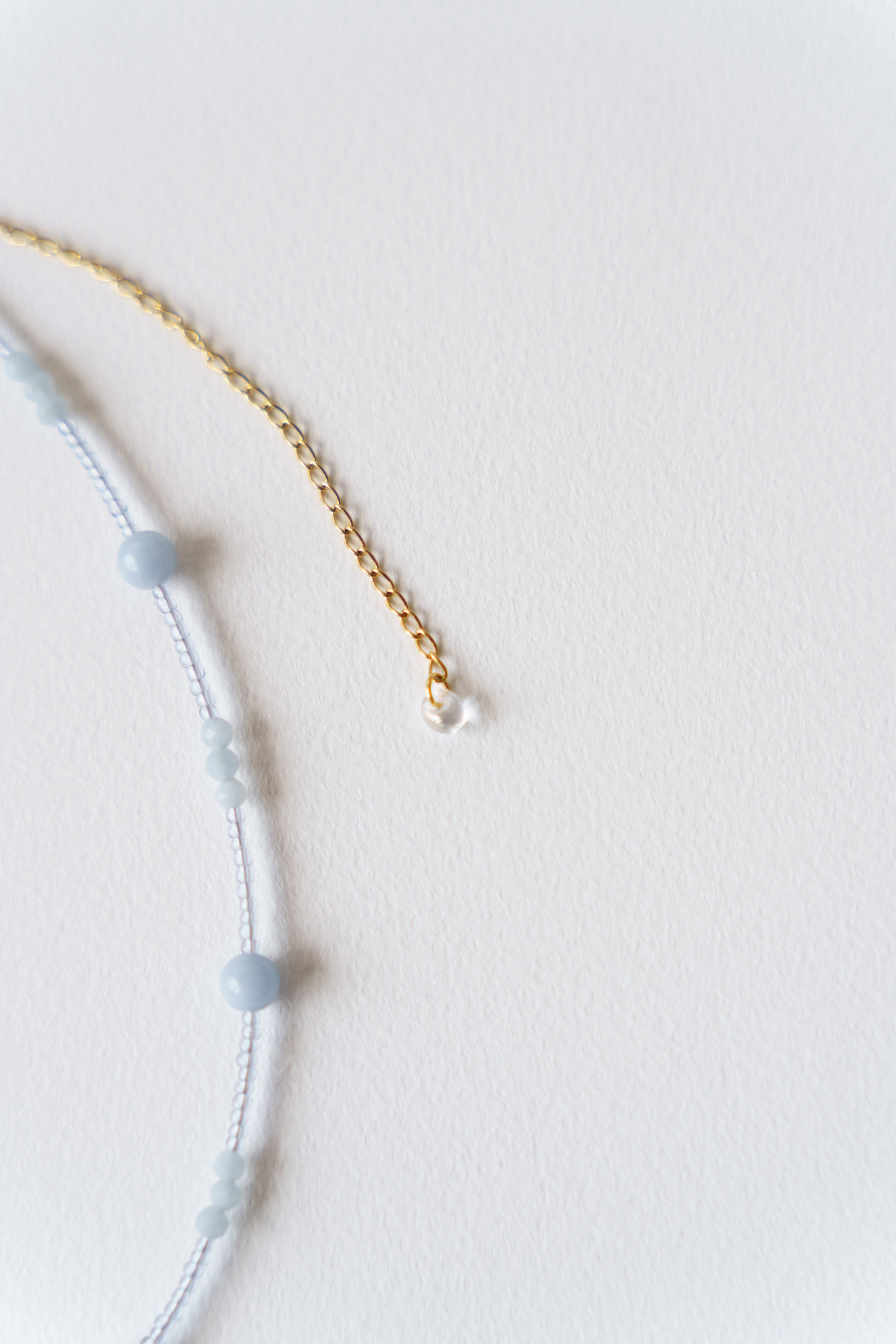 — 水面下の残り火 — やり残したかのように 道に迷ったかのように 表にはそう見えて 内なるものを育んでいる 【エンジェライト】 精神の浄化、クリアな思考、直感、優しさ 「静けさの中にある強さを引き出す」 材質:エンジェライト(天然素材の為形に個性があります)、ビーズ、サージカルステンレス サイズ:全長約38cm+10cmアジャスター
