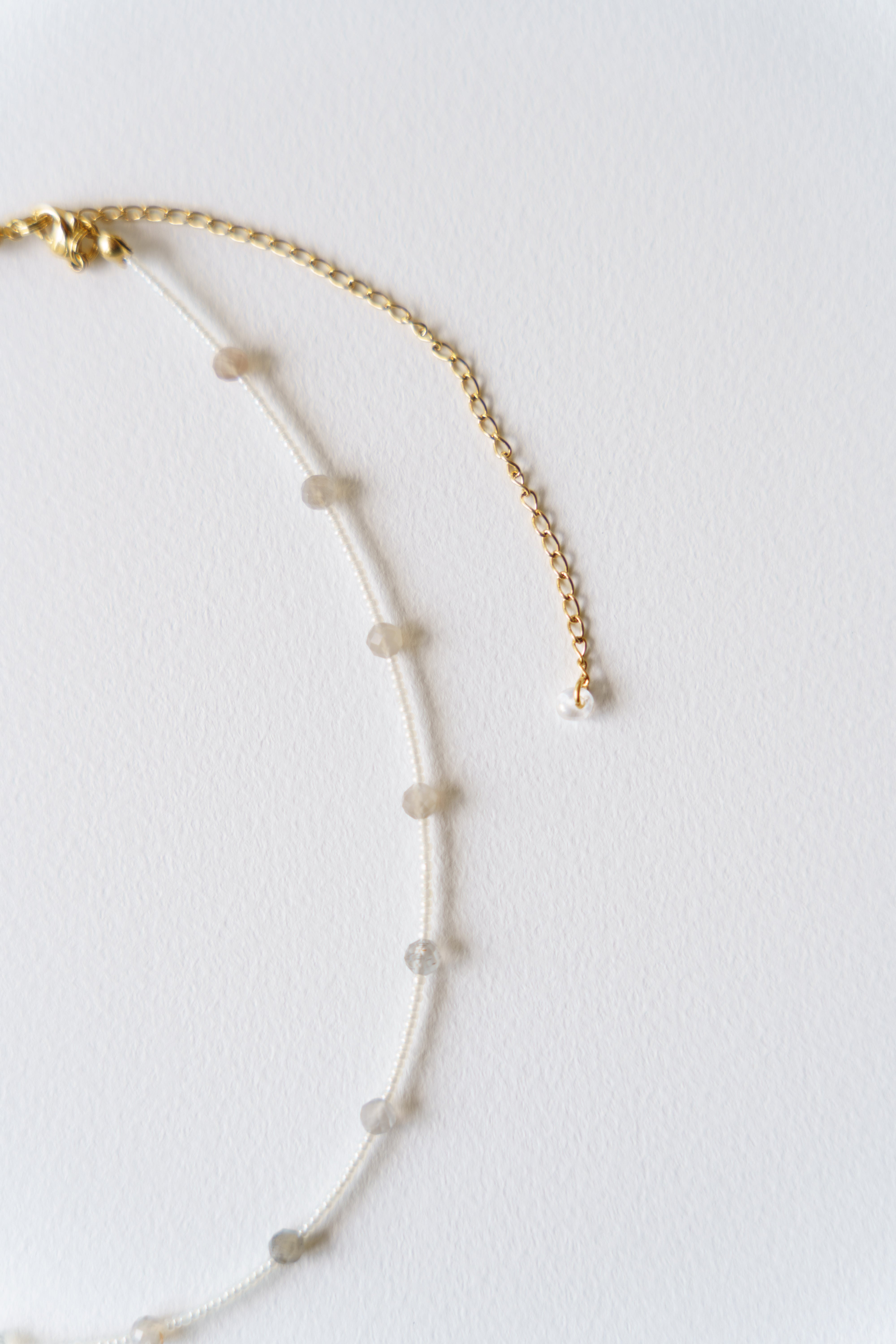 — 水面下の残り火 — やり残したかのように 道に迷ったかのように 表にはそう見えて 内なるものを育んでいる 【シルバーシャインブラウンムーンストーン】 直感力、月のエネルギー、新しいスタート、グラウンディング 「感情を整え、直感を信じて前に進む」 材質:シルバーシャインブラウンムーンストーン(天然素材の為形に個性があります)、ビーズ、サージカルステンレス サイズ:全長約38cm+10cmアジャスター