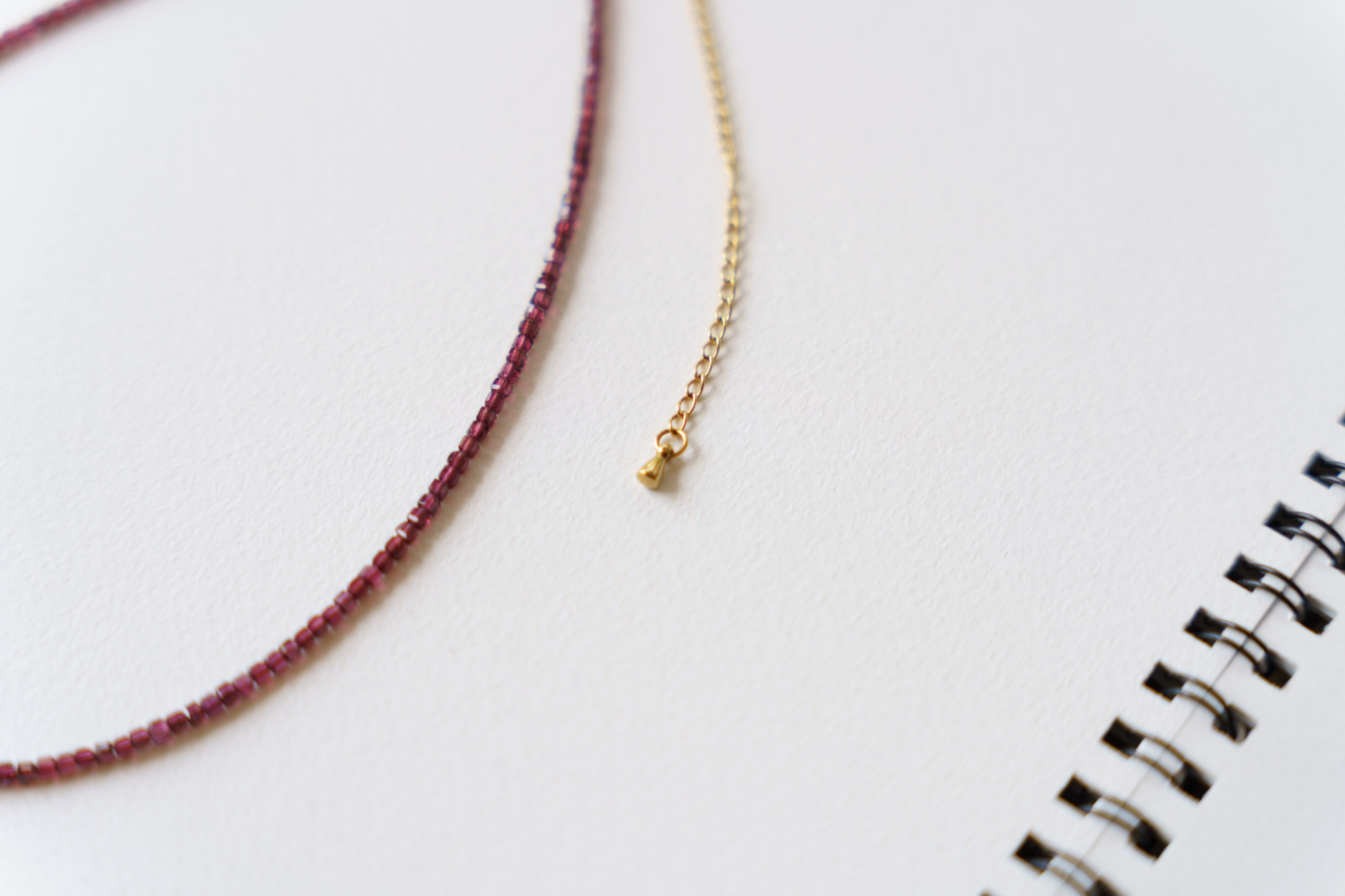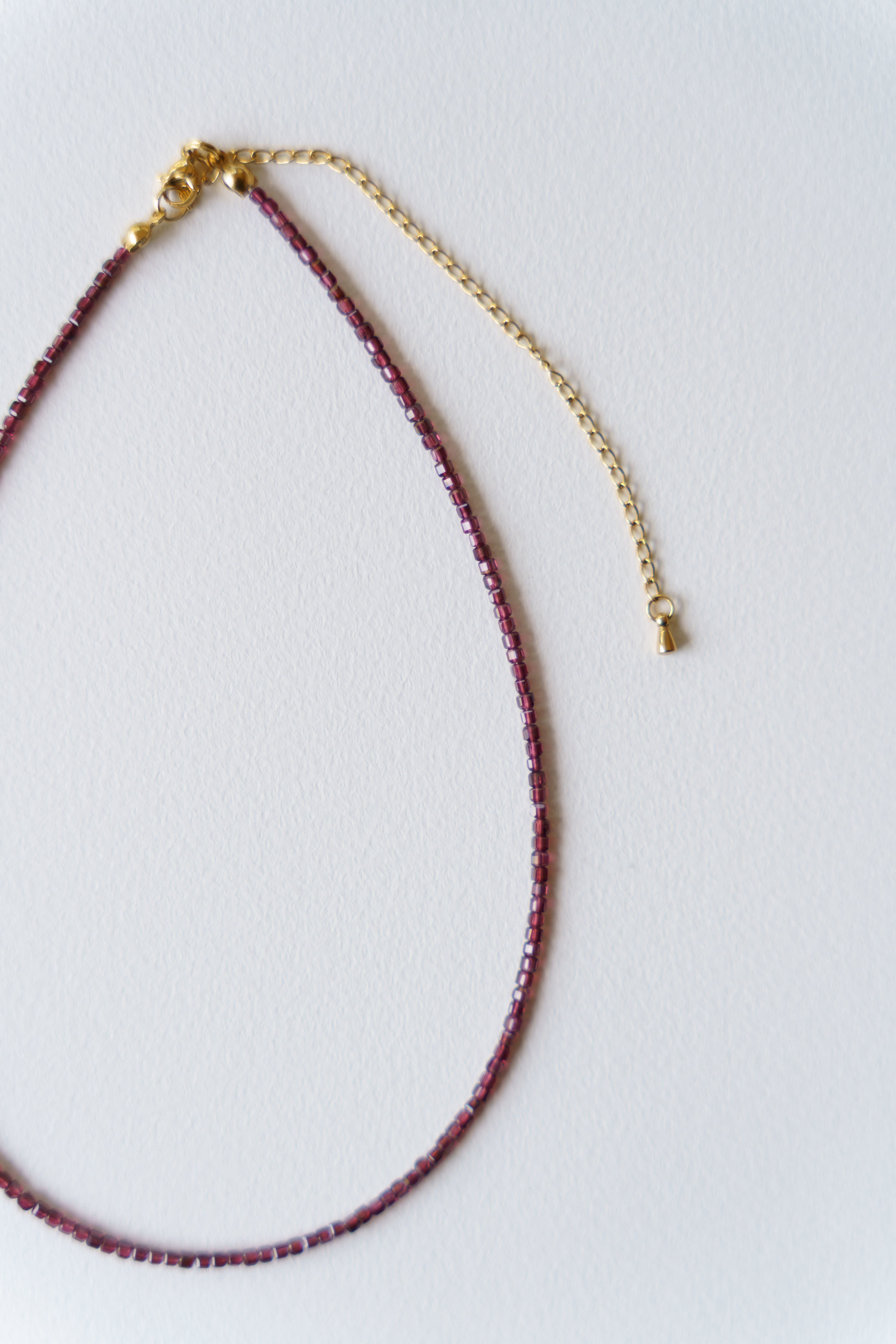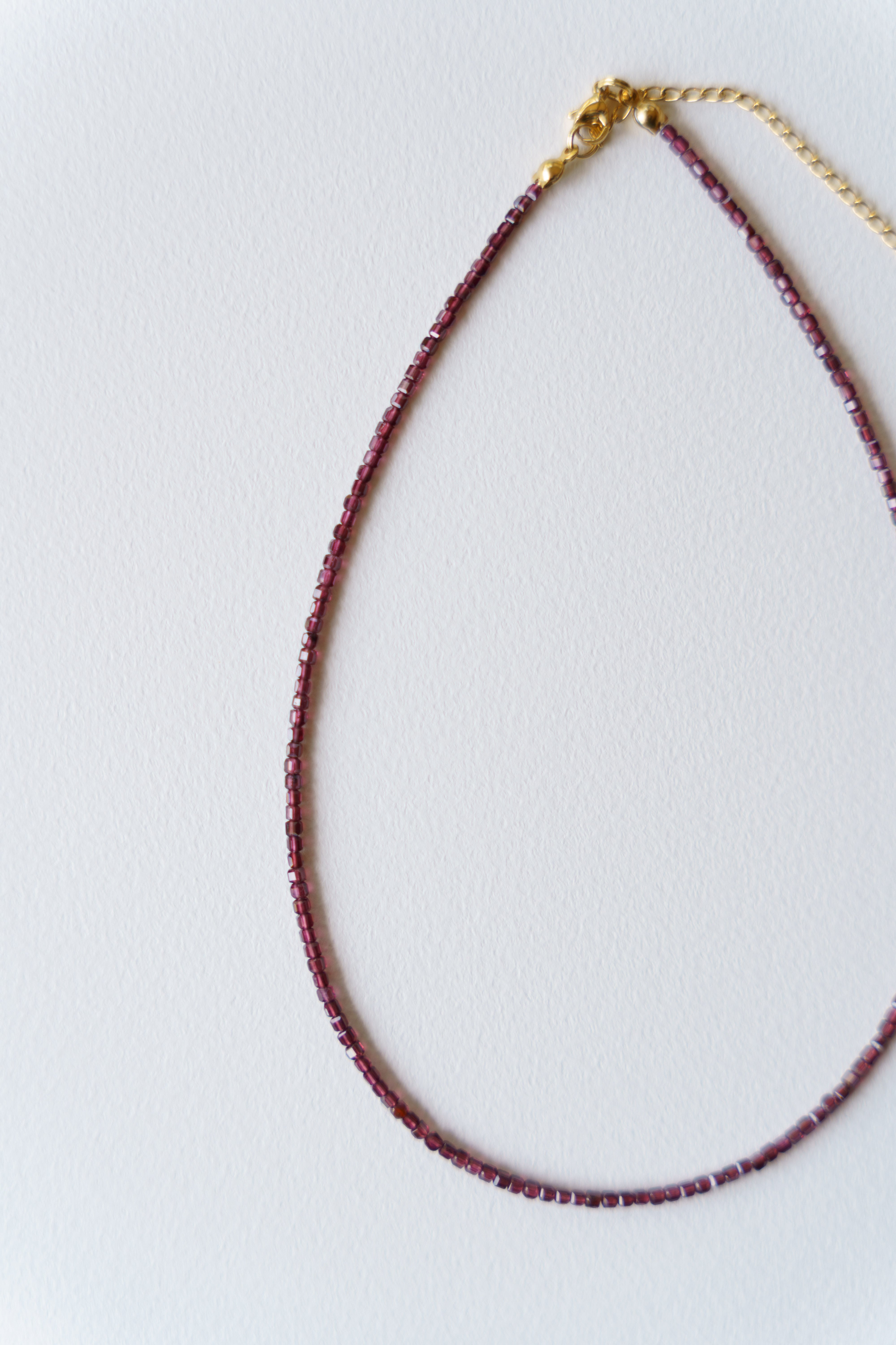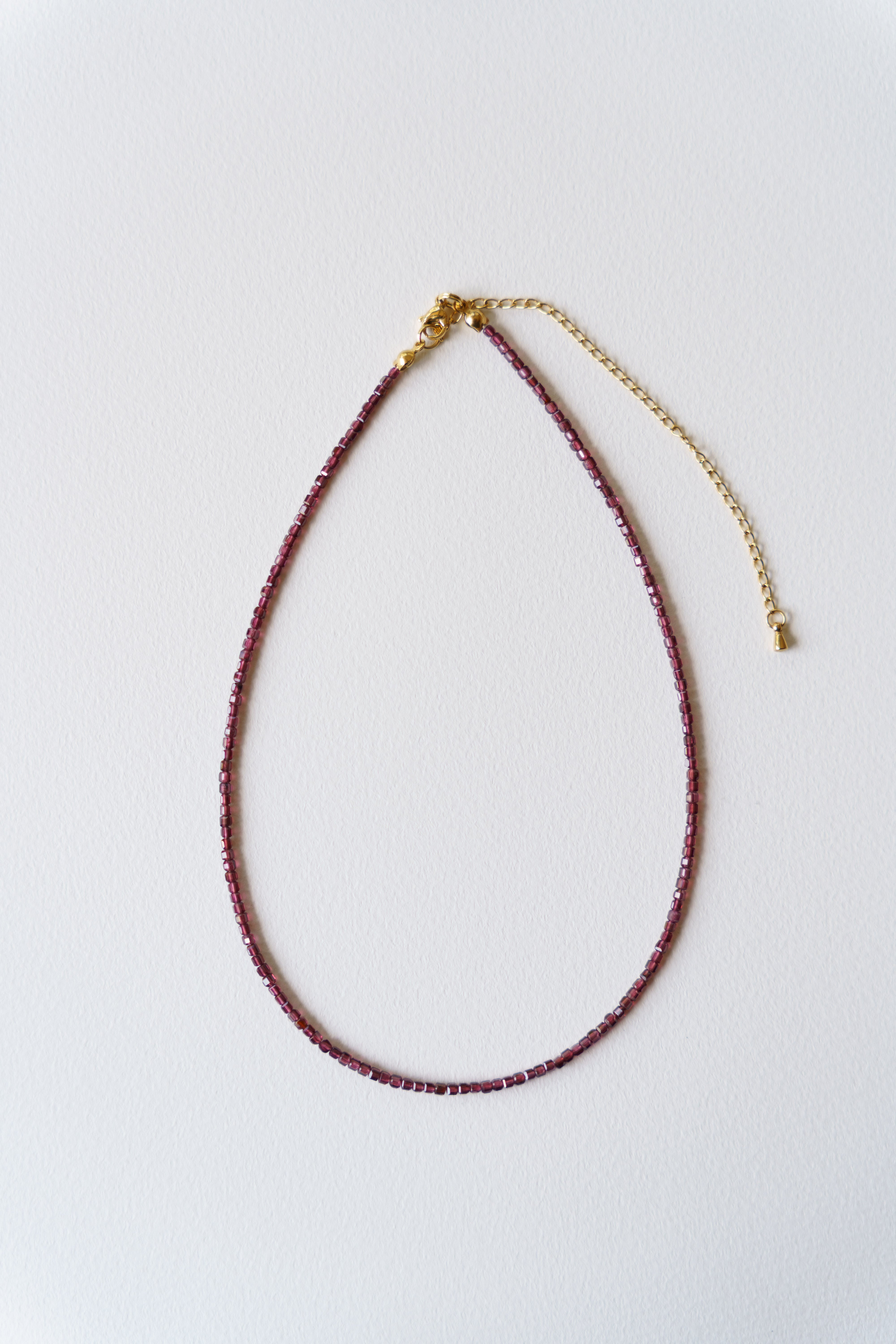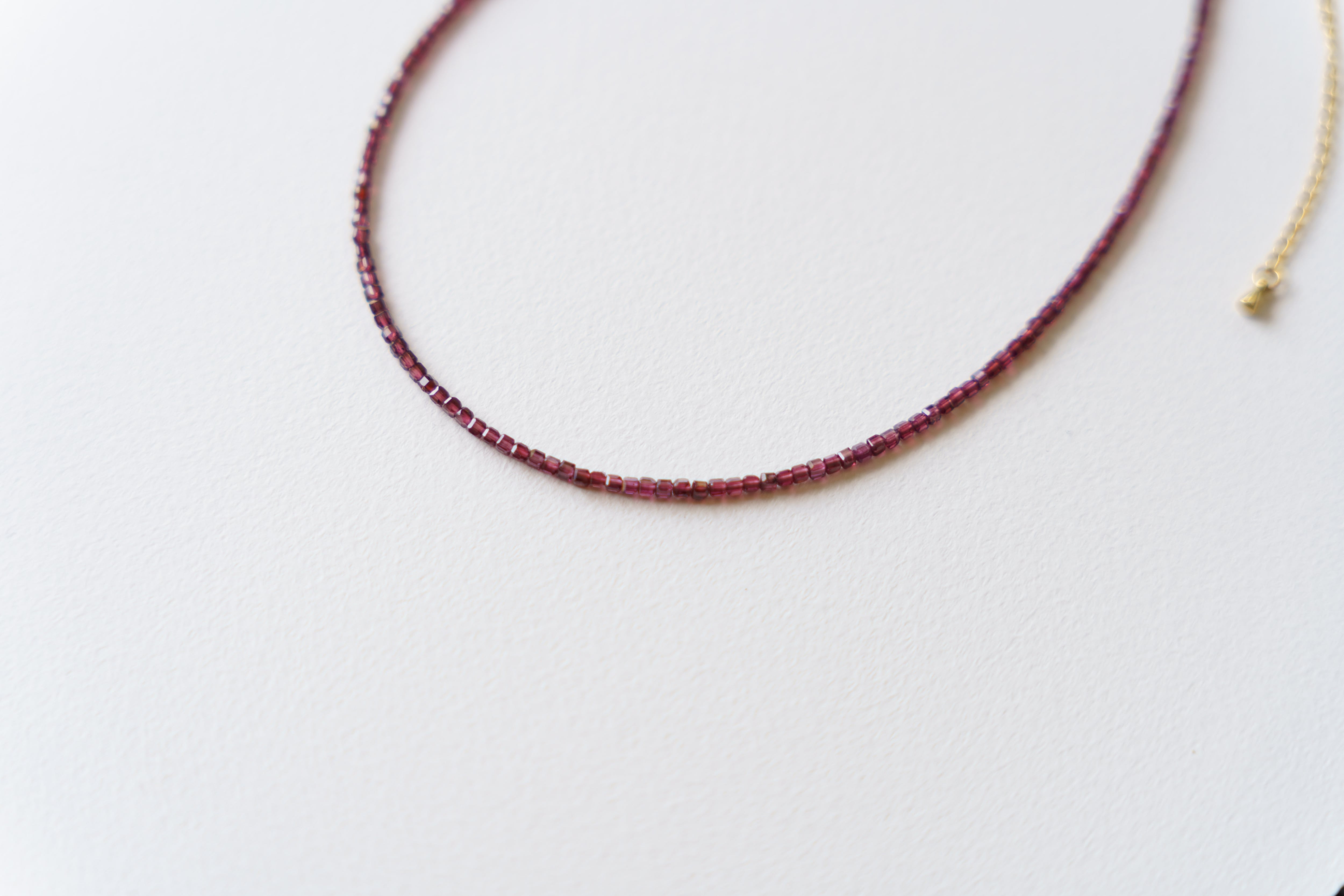 — 水面下の残り火 — やり残したかのように 道に迷ったかのように 表にはそう見えて 内なるものを育んでいる 【ガーネット】 実り、努力の成果、成功、生命力、絆 「情熱を持って進み、努力を実らせるお守り」 材質:ガーネット(天然素材の為形に個性があります)、ビーズ、サージカルステンレス サイズ:全長約38cm+10cmアジャスター